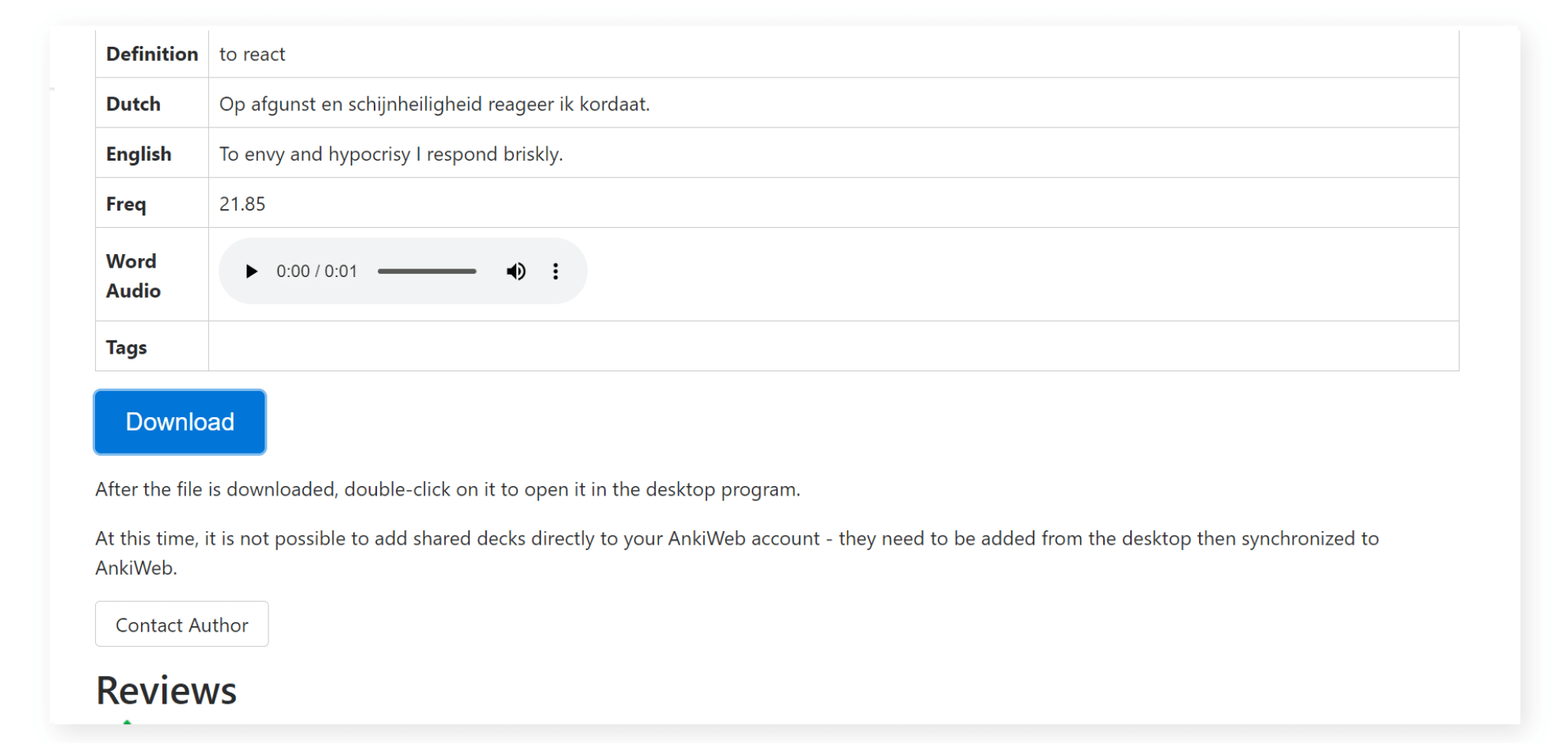 - 社群分享:Anki 具有百萬以上龐大的用戶社群,使用者可以分享跟下載其他人建立的卡片集,省去自己重從開始建立牌組的時間和精力。