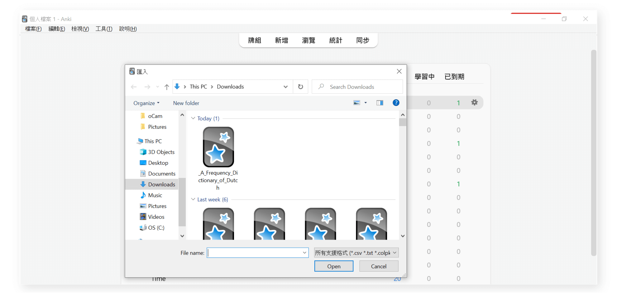 回到 Anki 應用程式,點擊「檔案」-「匯入」,再選擇剛才下載的檔案就完成了。