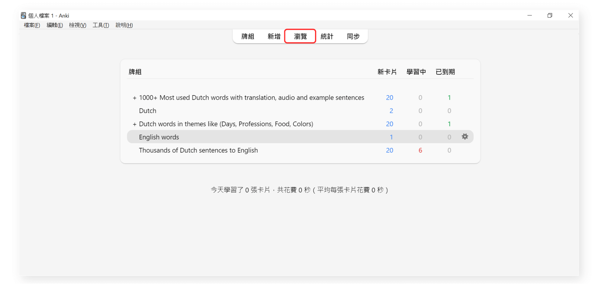 - AnkiWeb:可以直接使用網頁版的 Anki,但應用程式的功能還是最齊全的。