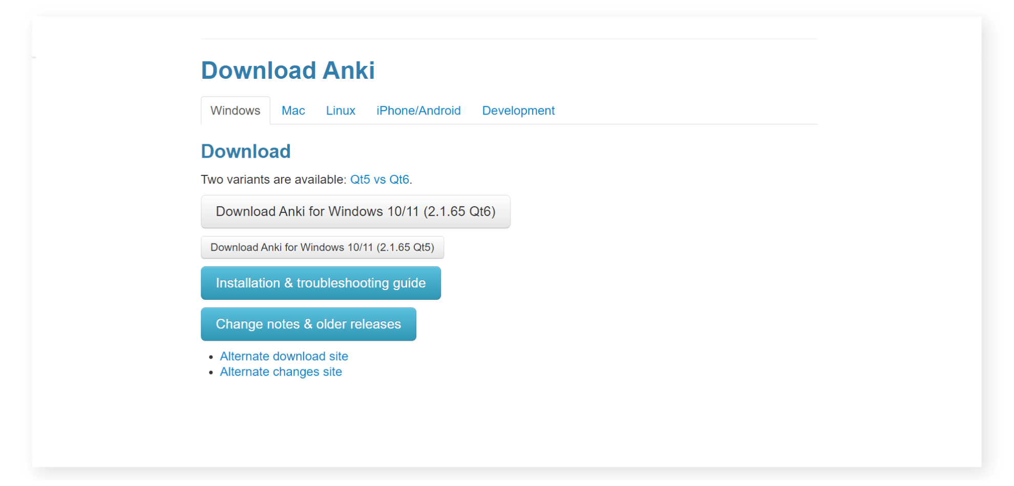 - Anki 軟體版:官網可選擇 Windows、Mac OS X 和 Linux 版本下載。