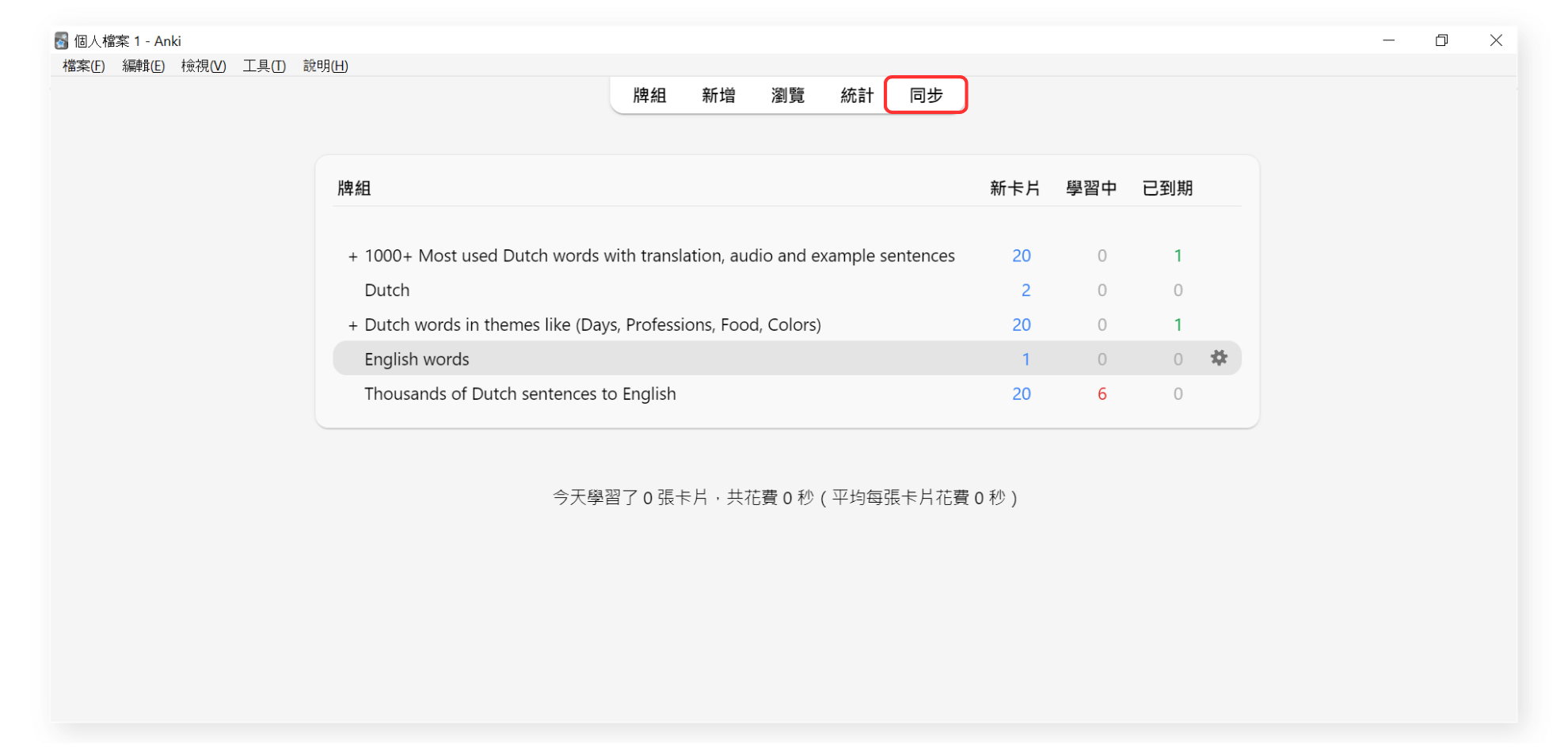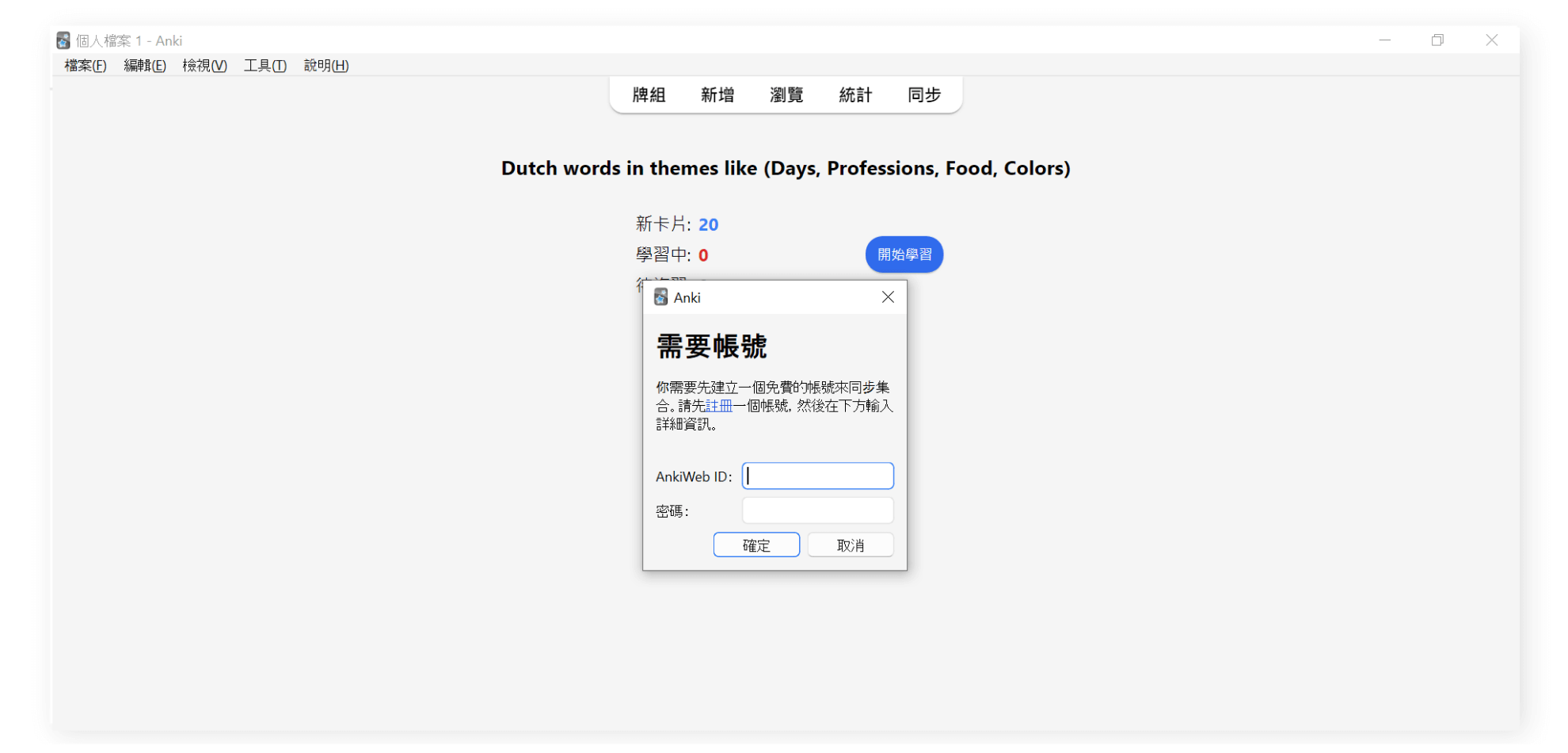 Anki 的同步功能可以讓你在不同平台上同步你的學習進度和卡片資料,因此非常建議在還沒建立卡片前,就先到官網去註冊帳號,這樣未來所有的變更都會自動同步到所有的平台和設備上面。