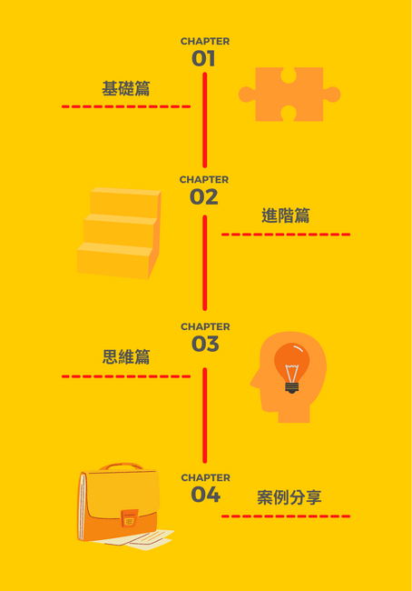 課程內容分為 18 個單元,總時長約 3 小時,分為基礎篇、進階篇、思維篇、案例分享。