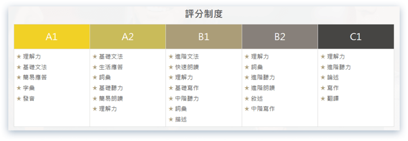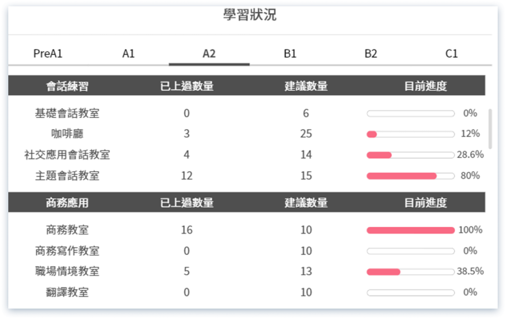 • 英語能力診斷報告:為 CEFR 專業英語能力診斷報告,能了解目前英文等級。