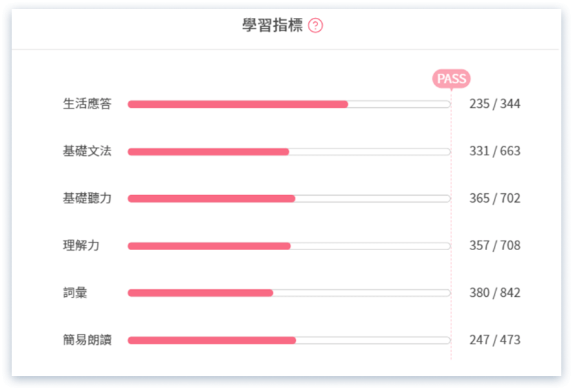 • 個人學習指標:擬定學習計畫,不同程度學員能追蹤成效及完成課程。