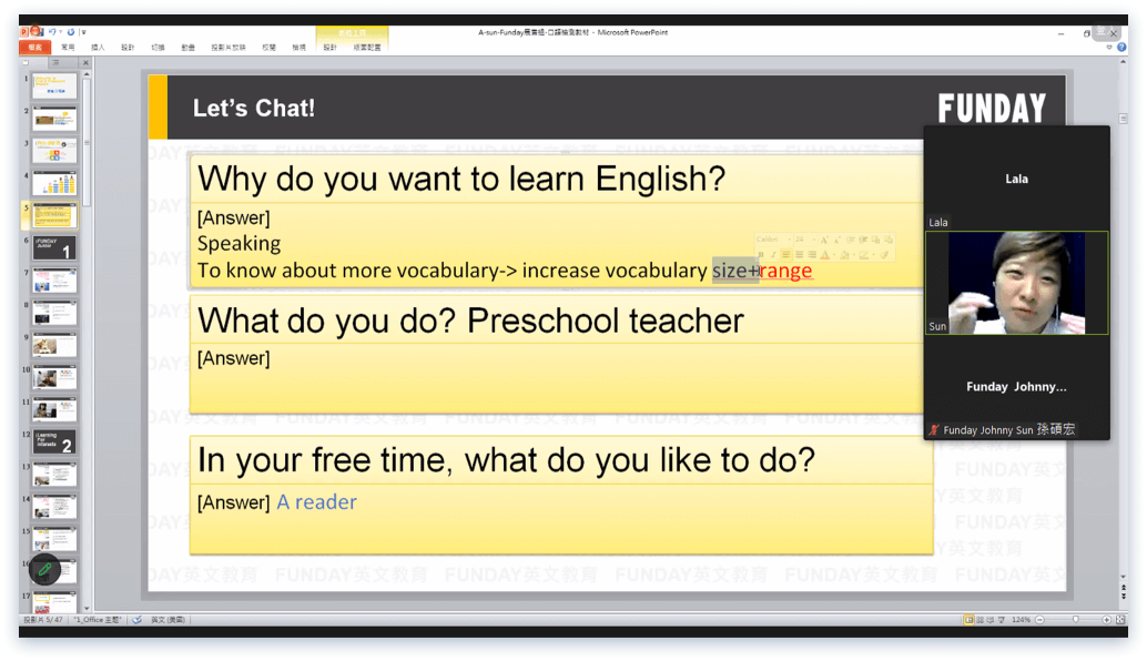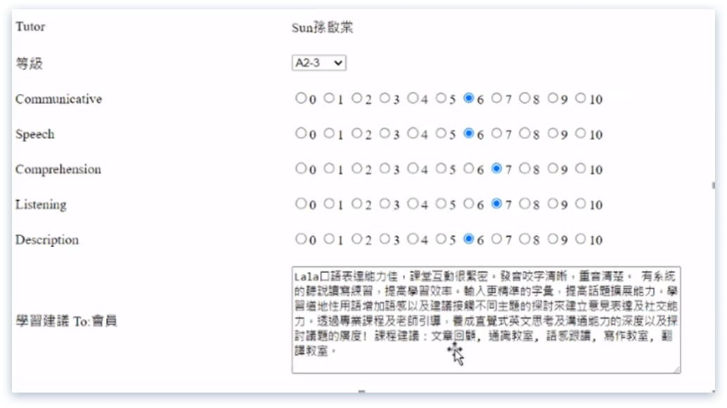 • 老師會記錄下每個學員說過的內容,如果回答太簡短會詳細追問。