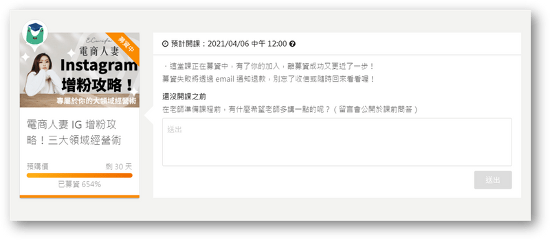 如果要解鎖額外課程,就是多多宣傳課程,讓更多人來加入募資,就有機會解鎖。