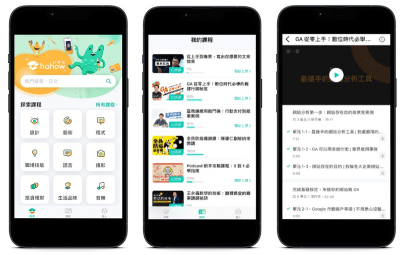 Hahow 除了用電腦外,也能用手機來上課,讓學習更不受地點限制。