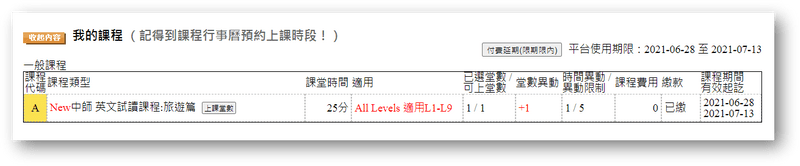 第二,課前 3~4 小時查看有無釋出喜愛老師的課程。