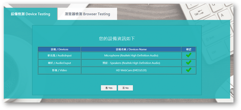 PS. 檢測設備及瀏覽器時,記得開啟麥克風與視訊鏡頭的權限喔。