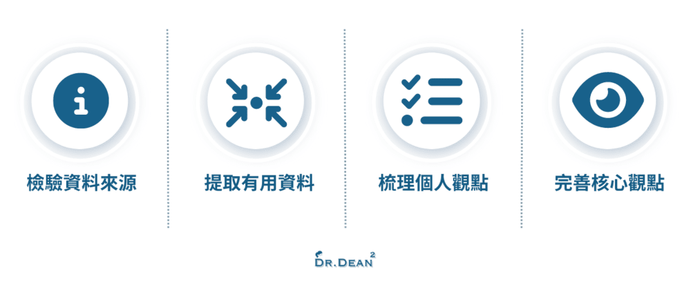 當我們要蒐集一個議題的資料時,應該先了解自己的目的是什麼、要對誰說,可要是想從蒐集、整理資料的過程找出重點,並形成個人觀點,還需要下列 4 個步驟。