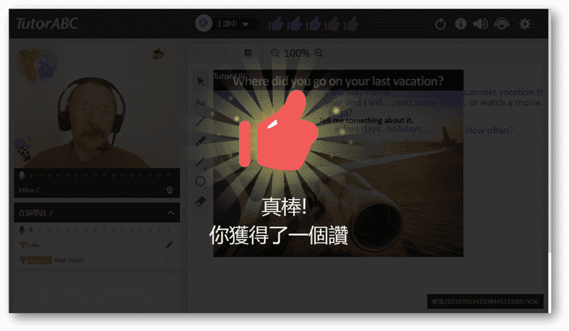 比較特別的是平台回饋機制做得很好,當你回答得不錯的時候,老師會給你一個讚,每堂課程都有 5 個蒐集讚的機制,讓你能更勇敢地開口說。