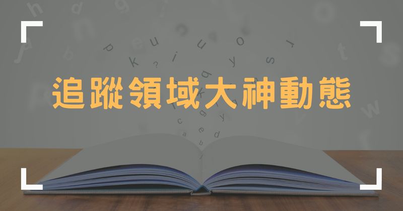 當我認為自己對於這個領域的知識有一定的能力後,我會開始去關注這個領域的大神,有可能是課程的講師,也有可能是這領域中知名企業的創辦人,最主要是想要聽聽這些走在最前端的人,他們有怎麼樣的觀點,也讓自己在現有的知識外,有不同的新想法。